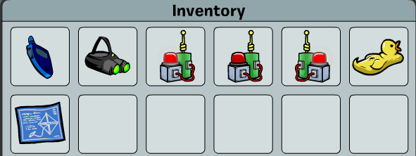 -Talk to G, then take the 3 Transmitters, the Yellow Duck and the Blue Print.